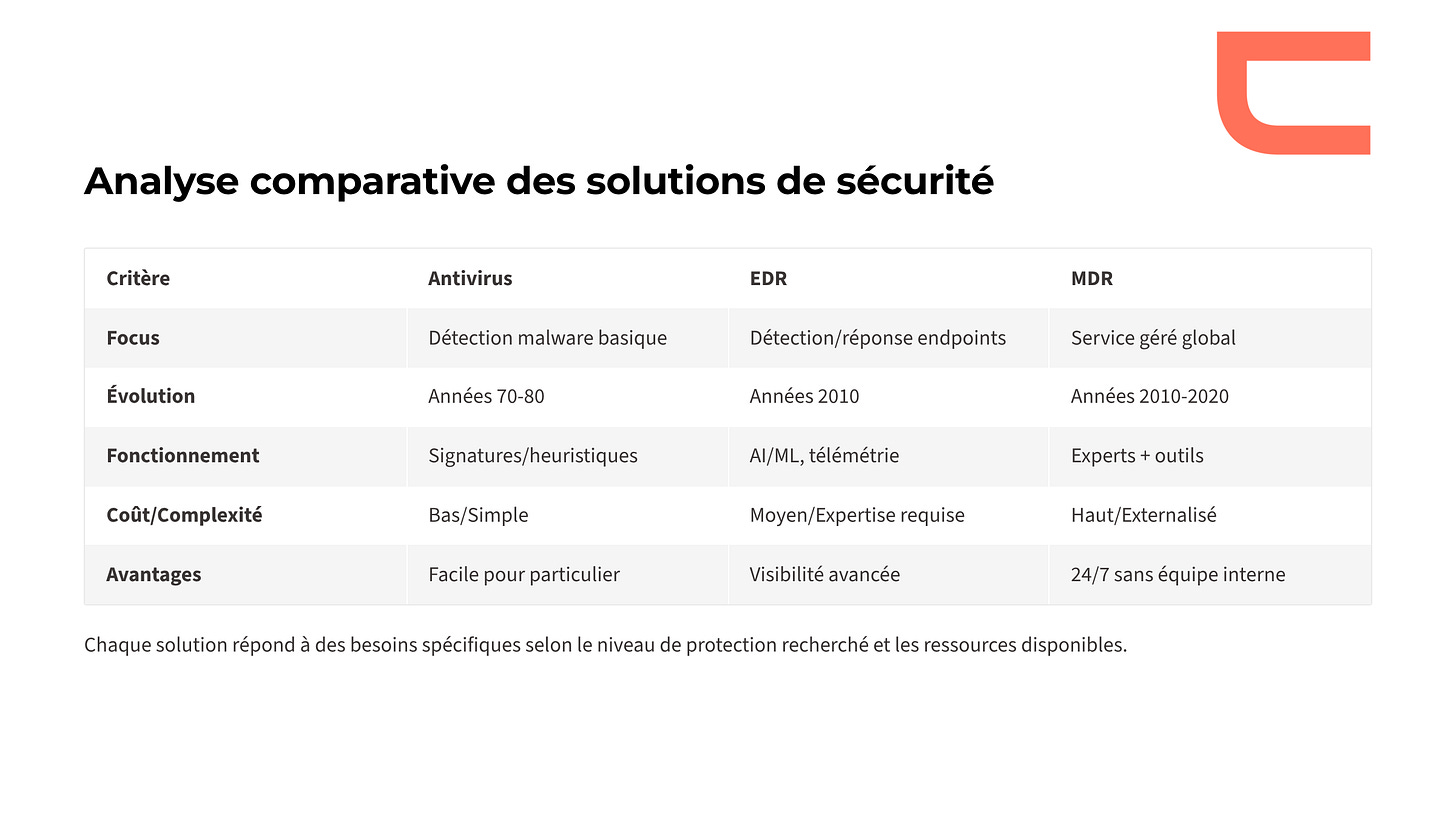 Comparaison : Antivirus vs. EDR vs. MDR